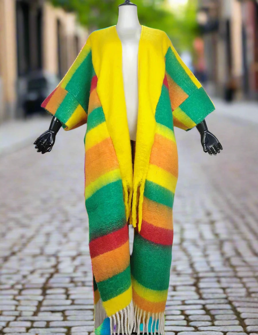 Rainbow Printed Open Front Long Warm Kimono/Cardigan