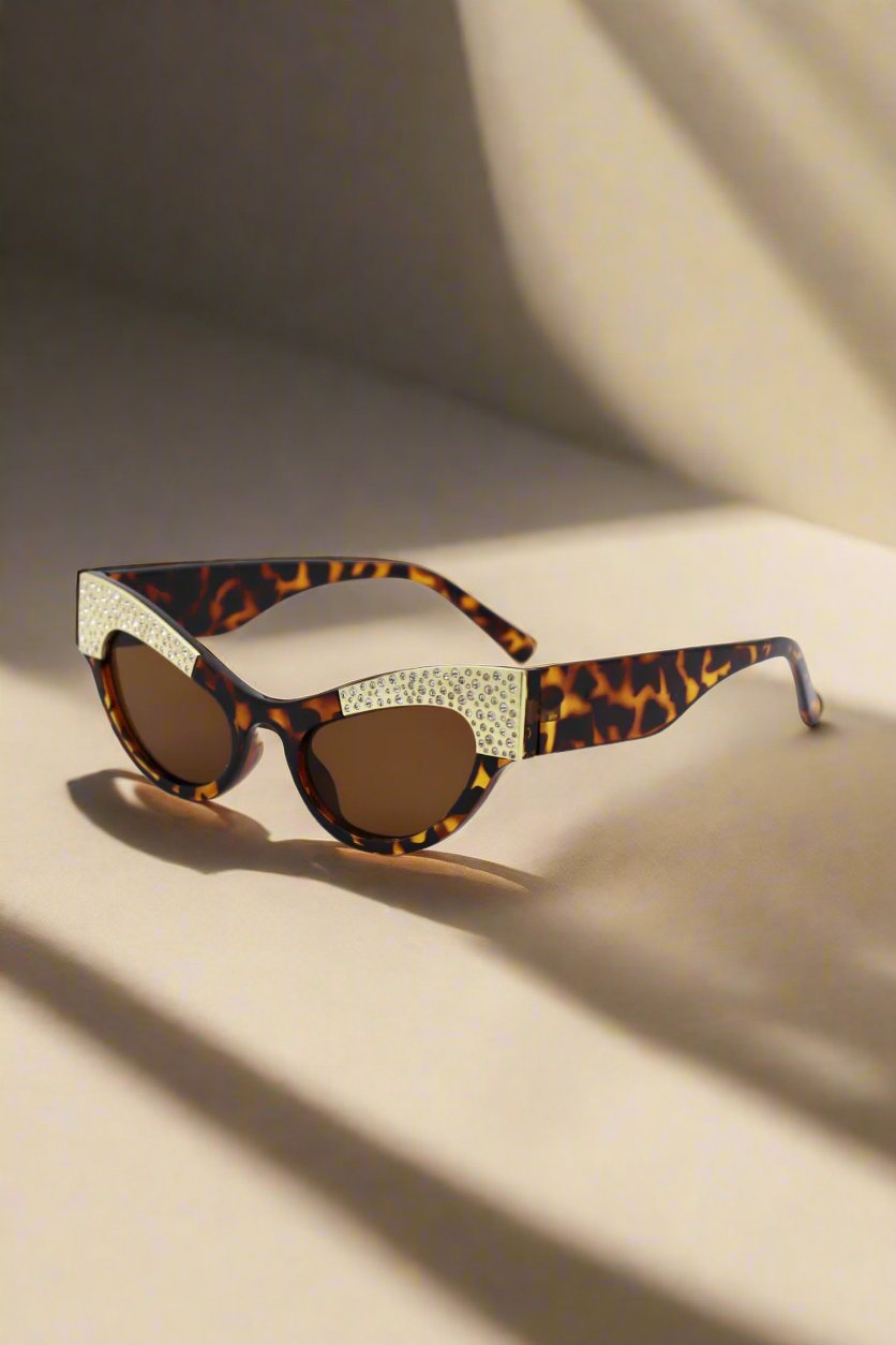 Gafas de sol de ojo de gato con ribete de diamantes de imitación y protección UV400
