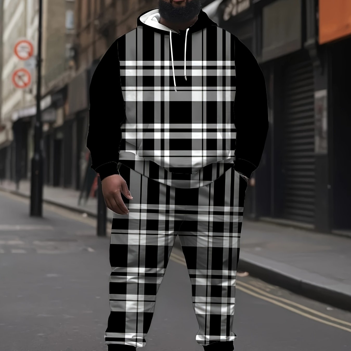 Men's Casual Outfit Set, Polyester Blend, Digital Print, Machine Washable, Hooded Top With Stretchy Fabric, Regular Fit, Knitted Construction