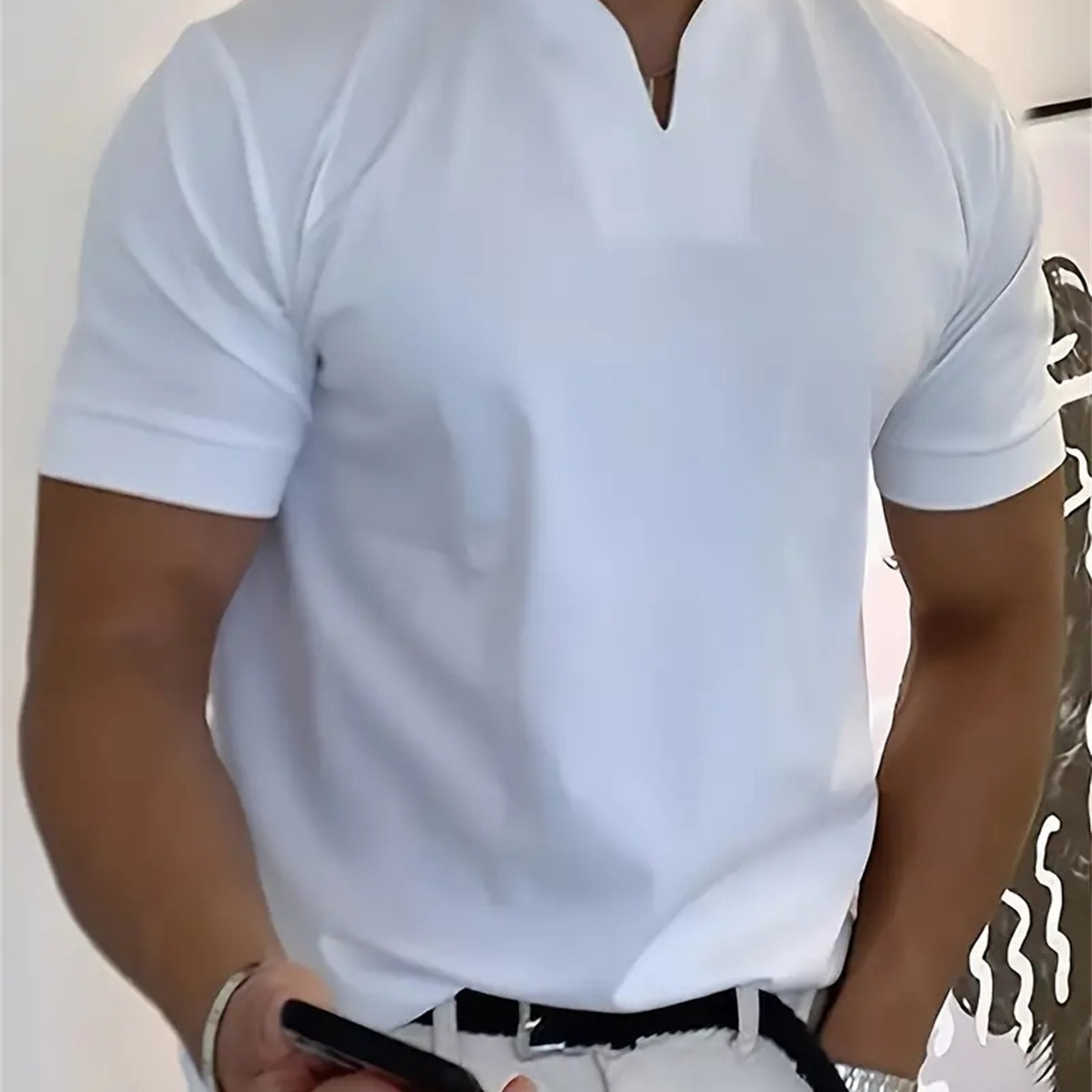 Men V-Neck Short Sleeve T-Shirt Soft Slight Stretch Polyester Fabric, Pullover Design, Weekend Casual Wear - Hand Wash or Dry Clean, Perfect for Indoor/Outdoor Activities