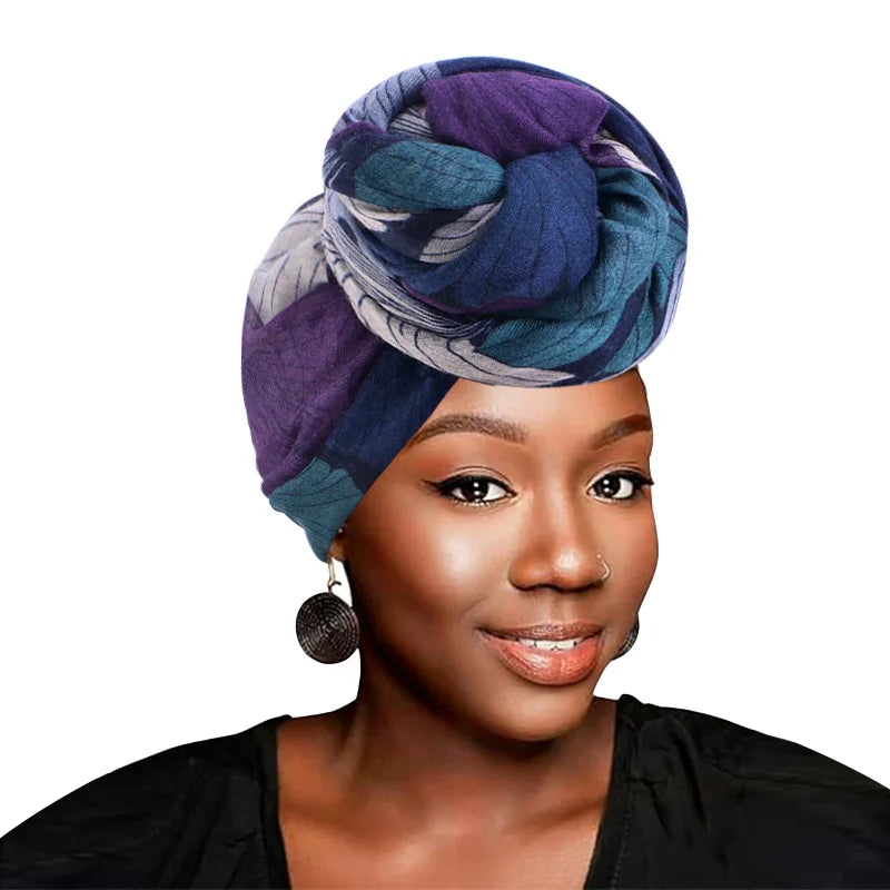 Women Headscarf Ethnic Style Wrap Head Cap Big Discoid Flowers Knotted Turban Hat Muslim Scarf Headware Lady Fashion Printed Hat